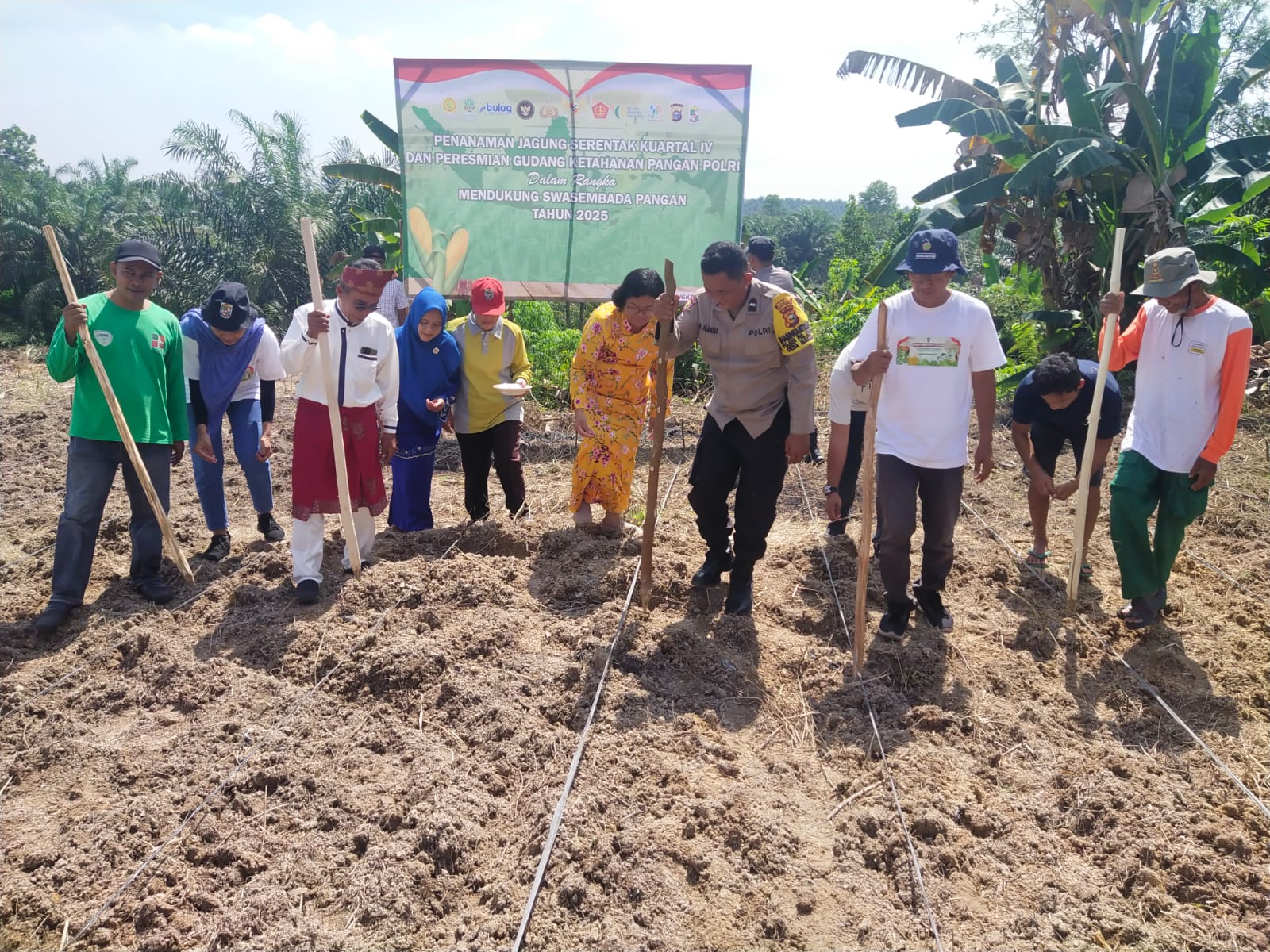 Dukung Swasembada Pangan 2025, Polsek Pangkalan Kerinci Tanam Jagung Serentak