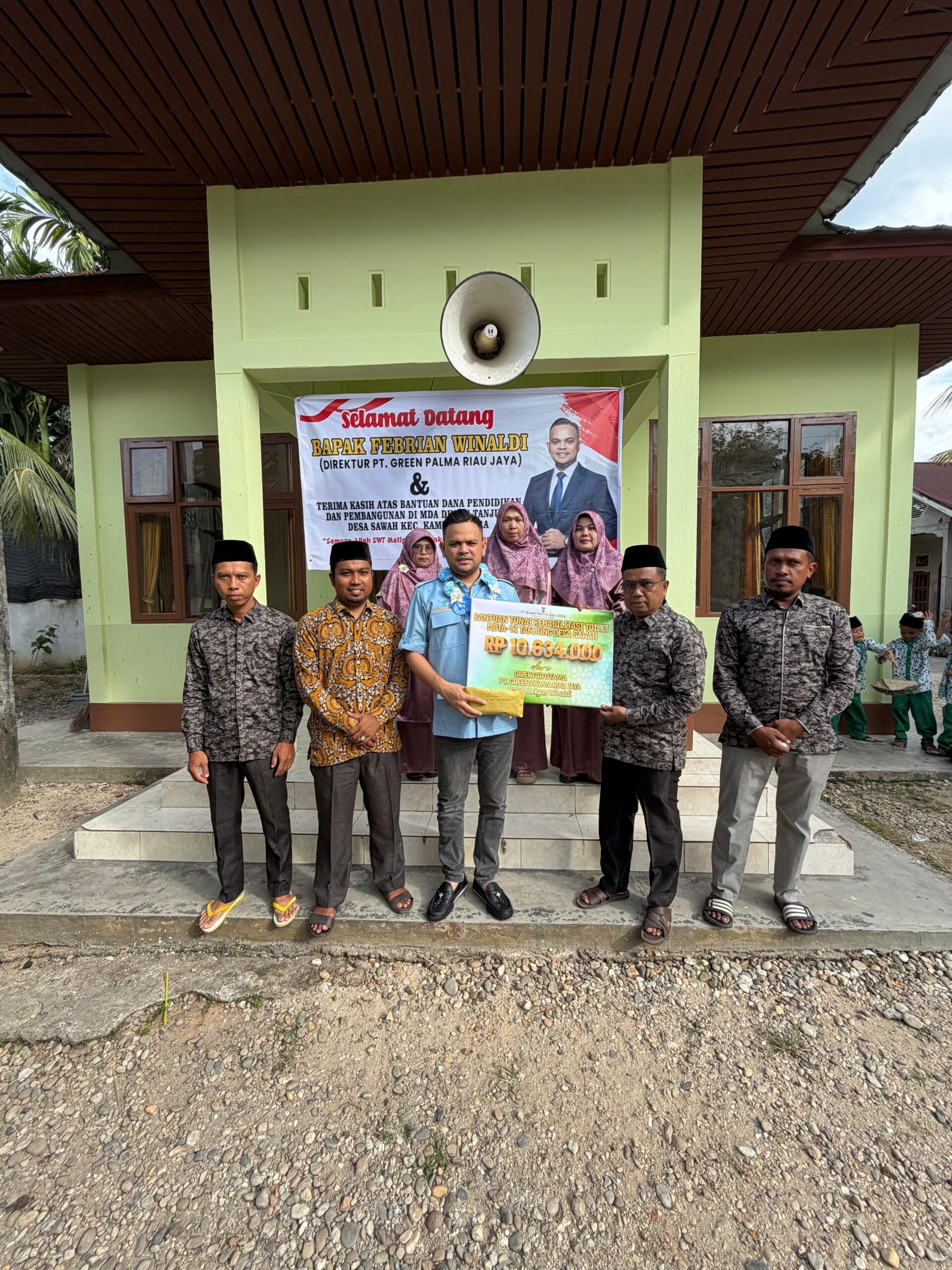 Gayonews.co.id – RIAU | Suasana haru menyelimuti halaman MDTA Dusun Tanjung, Desa Sawah, Kecamatan Kampar Utara, ketika Direktur Utama PT Green Palma Riau Jaya, Pebriyan Wnaldi, datang membawa kabar bahagia: pembangunan toilet baru senilai Rp10.636.000 dan penyaluran gaji bulan kedua bagi para guru sebesar Rp3.200.000 per orang.