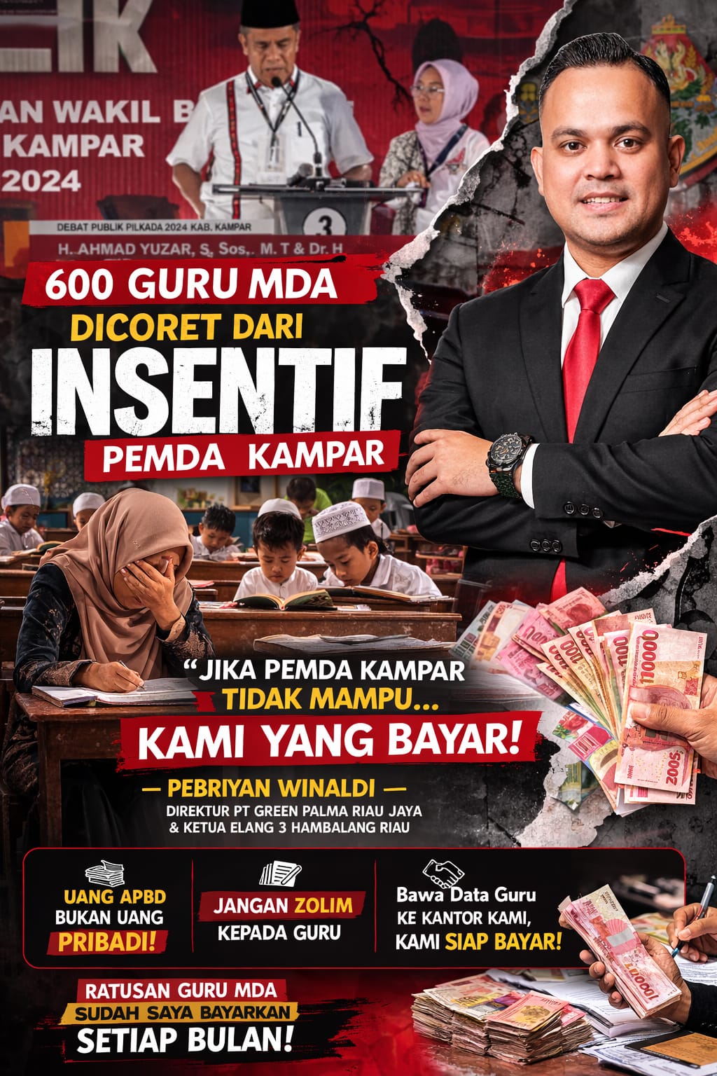 Gayonews.co.id|Kampar – Dengan beredarnya pemberitaan dari media Sapanusantara.com dengan judul “600 Guru MDA di Kampar Dicoret dari Penerima Insentif 2026, Janji Kesejahteraan Saat Pilkada Dipertanyakan”