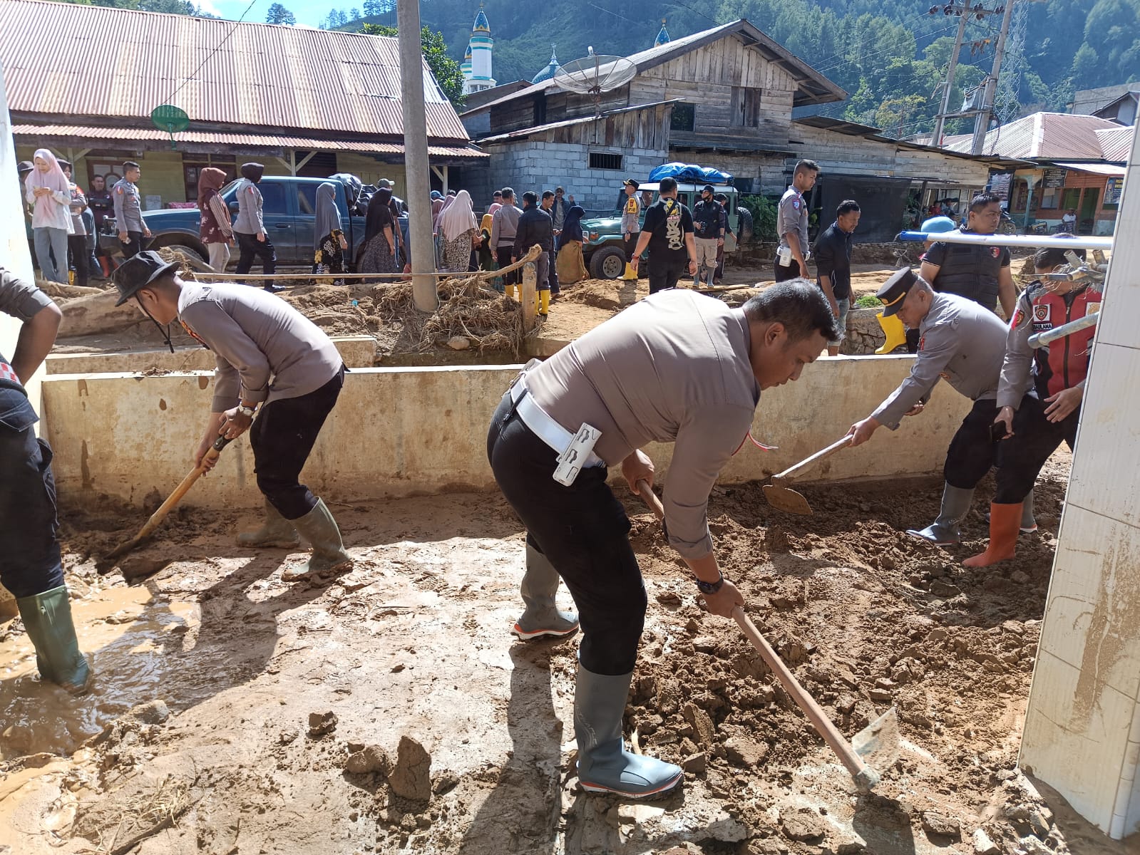 “Hari ini kami bersama masyarakat membersihkan lumpur dan puing-puing di masjid pascabencana alam. Masjid merupakan fasilitas umum dan pusat ibadah masyarakat, sehingga harus segera dibersihkan agar dapat kembali digunakan,” ujar Kapolres.