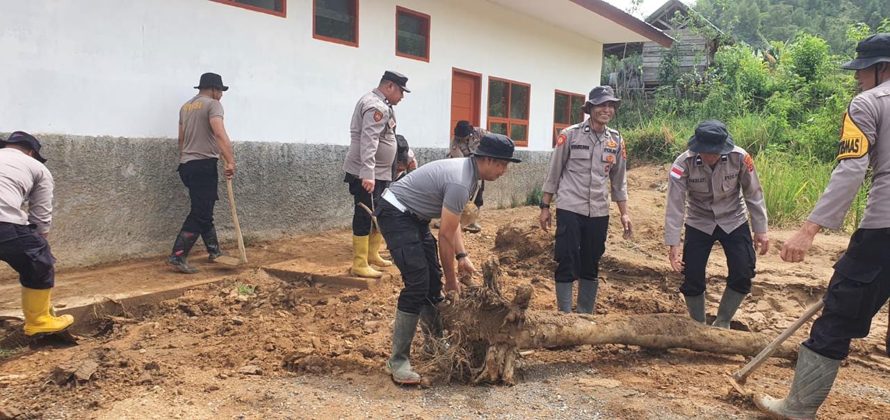 Sementara itu, pada hari yang sama sekira pukul 09.00 WIB, personel Polsek Lut Tawar melaksanakan gotong royong lanjutan dalam rangka percepatan pemulihan pascabencana di Polindes Toweren Antara, Kecamatan Lut Tawar.